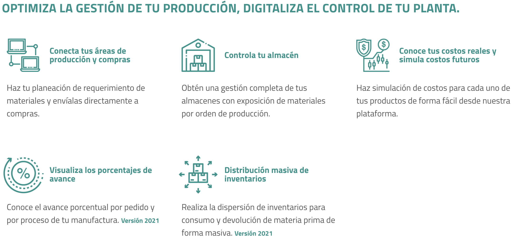 Mantén el control de tu planta productiva y organiza sus operaciones con nuestro software para procesos de producción, el cual te ayudará a ahorrar tiempo para que te dediques a lo que es importante.